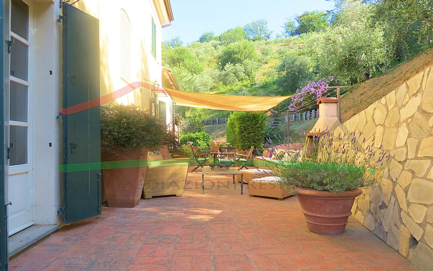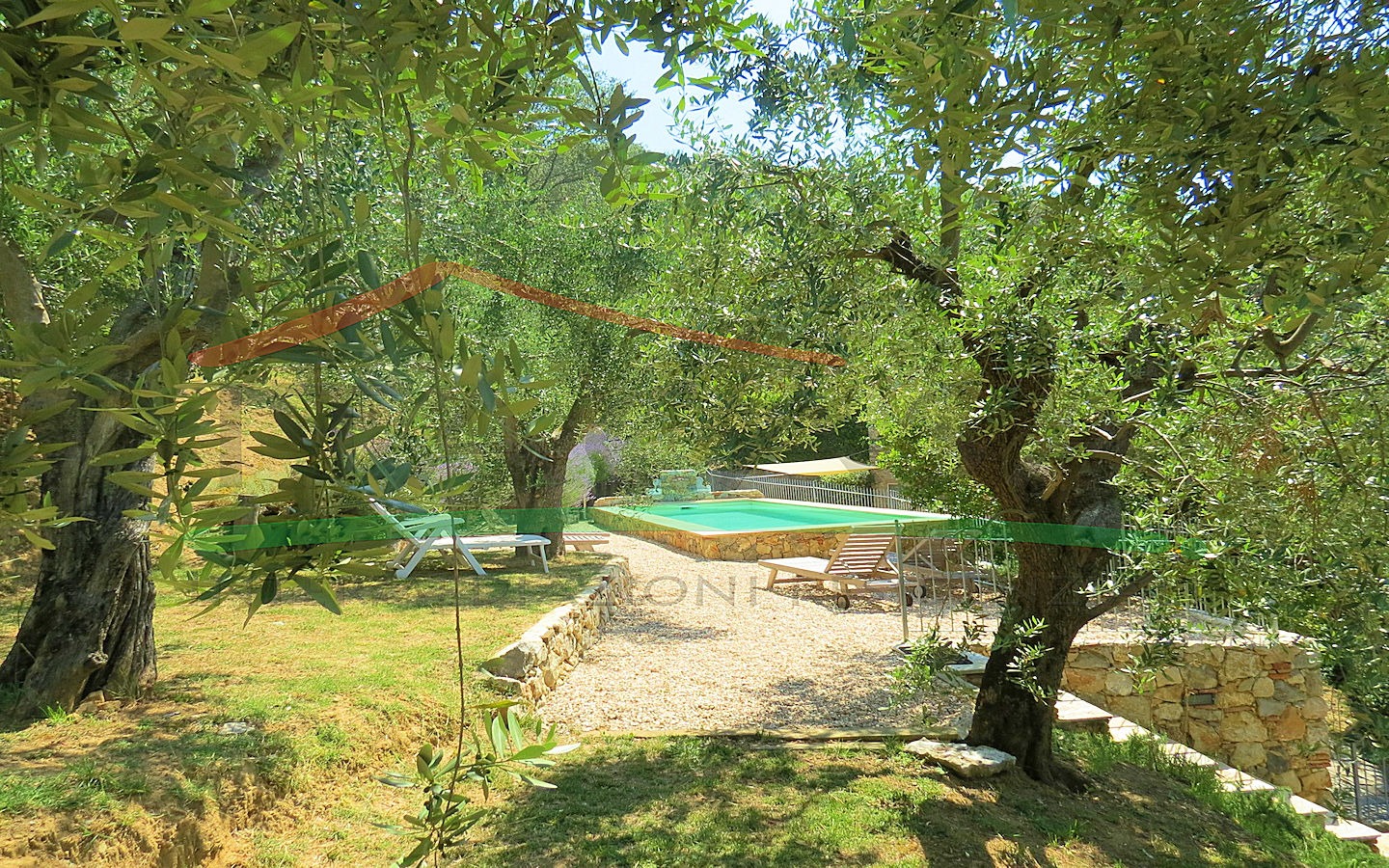 Terreno a corredo : circa 6000 mq ad oliveto terrazzato con piante secolari e produttive per una produzione di minimo 150 litri di olio di prima qualità e biologico. Parte del terreno è allestito come giardino con impianto illuminazione crepuscolare.