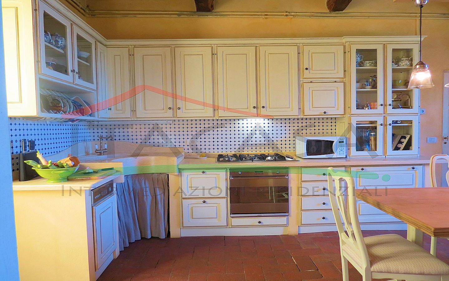 La casa padronale ha soffitti alti con travi e mezzane, pavimenti in mezzane originali, scala in pietra di Macigno, finestre originali restaurate e con vetro camera, impianto elettrico nuovo con prese schuco, persiane in alluminio, reti zanzariere a tutte le finestre, portone d’ingresso di castagno, portoni terrazze in legno laccato. Nella ristrutturazione è stata preso cura di preservare gli elementi originali più possibile.